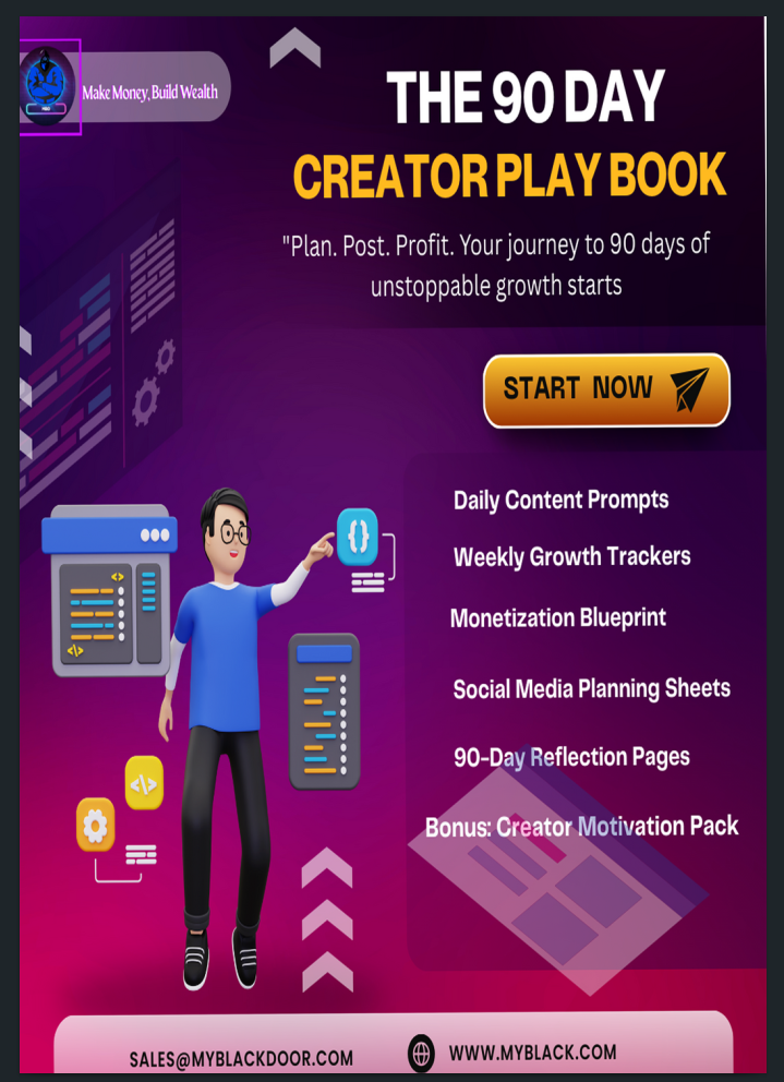 The 90-Day Creator Playbook is built for creators who want to grow consistently without burnout. Inside, you’ll get everything you need to stay on track, stay inspired, and get results.